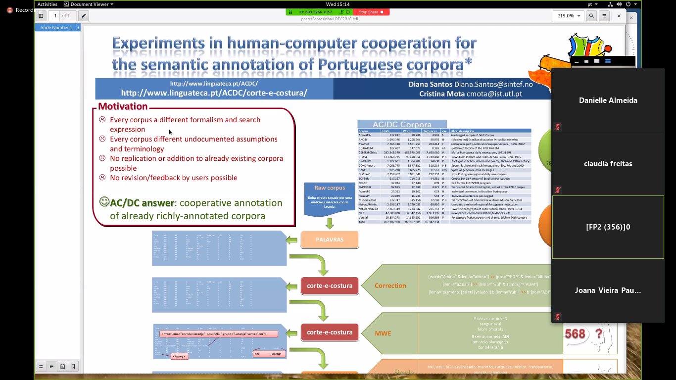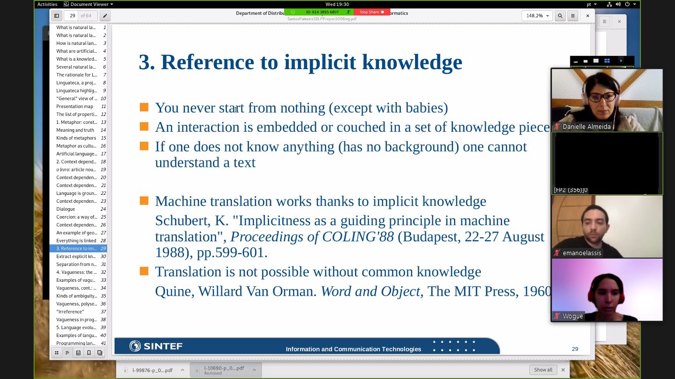 Due to the COVID-19 pandemic and the travel restrictions, the activity planned to take place in Oslo in May for 2 researchers was reorganized as online training. The activity was carried out through the zoom platform for 10 days and, being online, it could be attended by 8 researchers from different countries. The training focused on Natural Language Processing and an introduction to “R” software.